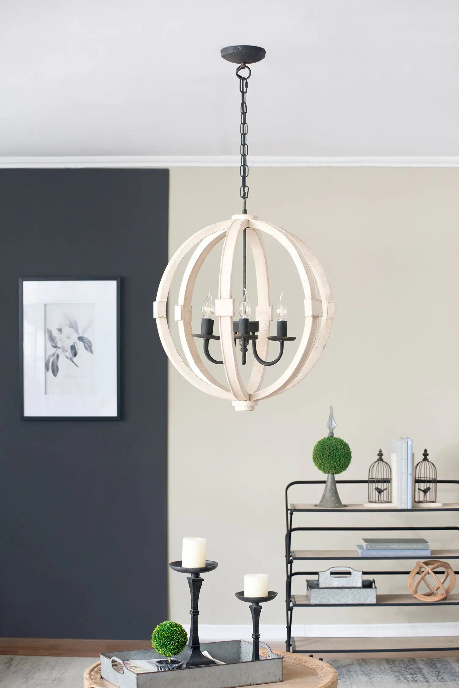 6 - Light Wood Chandelier With Adjustable Chain For Kitchen, Dining Hall Entrance, Bulb Not Included
