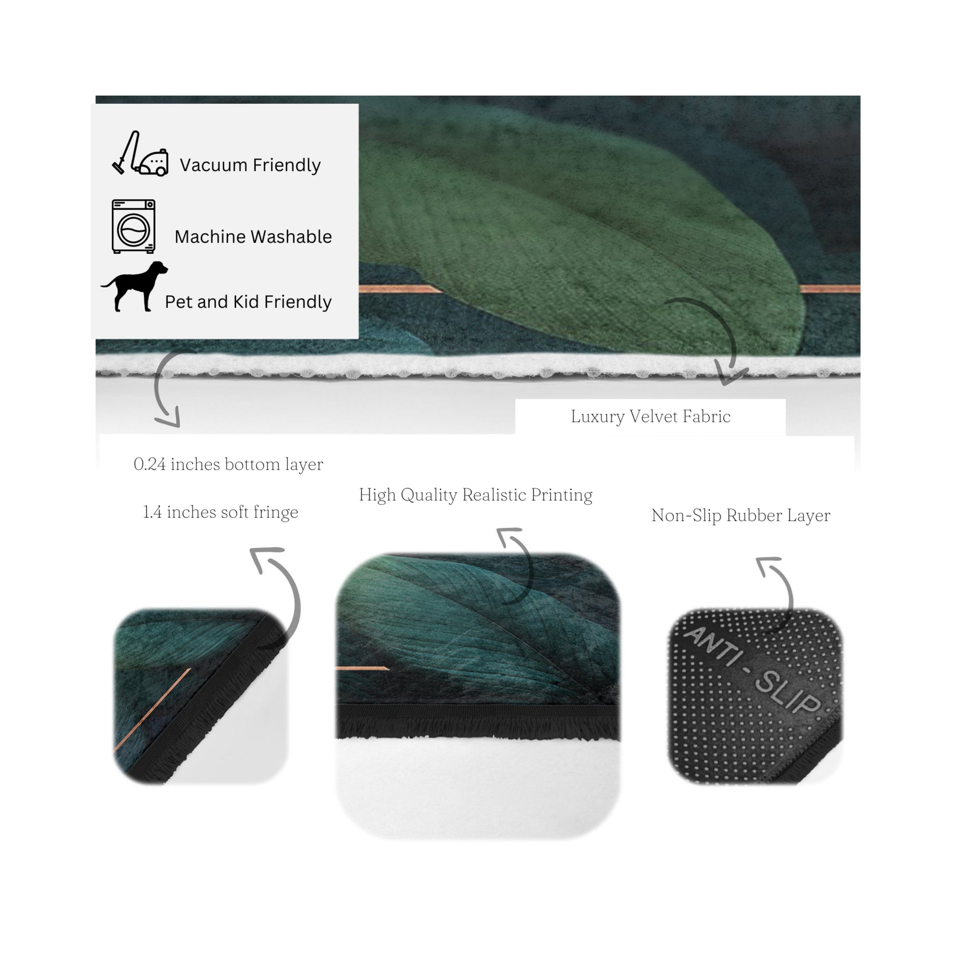 Floral Pattern Home Decor Washable Area Rug | Homeezone